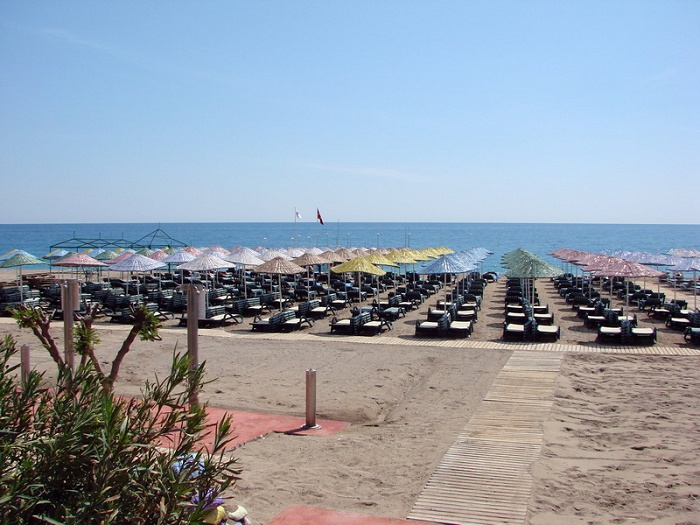 в 75 км от аэропорта г. Анталья, в 20 км от г. Кемер, в поселке Текирова, на самом берегу моря.