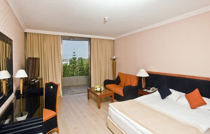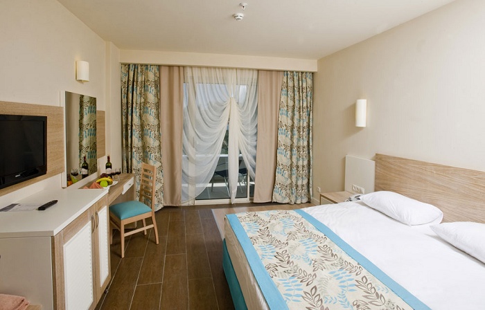 Сам номер обычный, была плазма, где-то 1,5метра, вроде круто, но есть большое НО: из 50каналов, только 2-а на русском( первый и какой-то левый спортивный), 2-а музыкальных (турецких- первый день прикольно, потом достала одна и та же мелодия) все остальное на турецком или немецком, а самое чудное когда плазма показывает без красного цвета!!! Теперь идем в ванную, достаточно чисто и прилично, даже стоит душевая массажная установка, это круто!!! Да, если есть достаточный напор, а когда он меняется и вода меняет температуру от холодной до горячей, то в первый день мы были в шоке!!! После жалобы, нам сказали , что придет мастер, мастера мы не ждали, но похоже он и не приходил ( думаем эта проблема во всем отеле, многие жаловались на это),а потом все привыкают. Знаете почему? Потому, что кондишин работает не так, как мы все привыкли, а еле-еле. И не только в номерах, но и даже в холе, и ресторане.