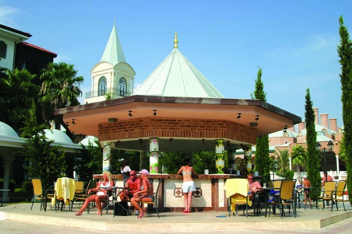 | Была в отеле с 24 по 31 июля 2007 года с подругами. В Турции 15 раз, обычно ездила в отели более высокого класса, но по обстоятельствам пришлось поехать в этот отель. Плюсы отеля: доброжелательный персонал, а если сказать пару слов по турецки и дать доллар, так вообще..., номера чистые, убирают каждый день, сантехника неплохая, очень красивая архитектура, большая территория, песчанный пляж, кроме тонкой полоски гальки при входе в море, отличная дискотека, в отдельном здании, качественная клубная музыка, столики и диваны, второй этаж, гамаки, лежаков всегда достаточно, место в ресторане даже в самый пик найти можно. Минусы: часто бывает что барная стойка грязная, улитая вся, и никто ее не вытирает, или у бармена рубашка вся в пятнах, импортных напитков нет ни в одном баре в отеле, анимация на англ. языке, много турков отдыхающих, слабый фен, основной лобби бар прямо на входе между двух выходов и напротив ресепшена, не очень уютно, еда не очень то разнообразна, мебель и лифты и сами здания довольно староваты и потрепанны. В общем на все минусы мы с легкостью закрывали глаза, мы отдыхали и весилились, от себя ставлю оценку "5", но если объективно и в сравнении то конечно твердая "4". |