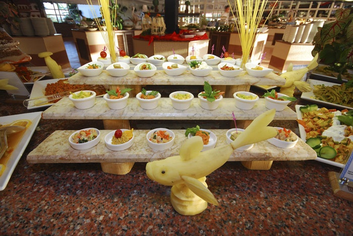 | Мы отдыхали в этом отеле неделю в середине июня. Отель очень понравился: территория, бассейны, пляж и т.д. Хочется рассказать о минусах: 1) Еда - мягко скажем, так себе! Мяса мало и редко давали (всего два раза мы застали) в основном рыба, и та, непонятно какая, потому что чаше всего была горькая! 2) Впервые, за 8 лет пребывания в турции столкнулись с проблемой - оооочень мало фруктов! Арбузы давали только на ужин, а вдругих отелях круглый день. Дыни давали только один раз. Часто были меленькие и кислые абрикоски и сливки. А так, в основном апельсины и яблоки. Первые 2 дня еще давали клубнику, а потом нет. А других фруктов небыло вообще!!! Ни черешни, ни инжира, ни персиков, даже бананов. Это конечно, удивительно. 3) Но самое ужасное - это напитки! такой гадости мы еще в жизни не пробовали. Сплошная химия, еще и таких диких цветов, что пластиковый стаканчик полностью окрашивался. Самое нормальное,что там было - это Кола, не смотря на то, что дома мы ее вообще не пьем. Но больше всего нас добило, что они пишут, что дают фреш напитки.А это таже самая химия, разбавленная свежей мякотью, для вида. 4) И еще не было овощей гриль. Когда их готовят целиком, а разве это сложно? Вообщем, судите сами! |