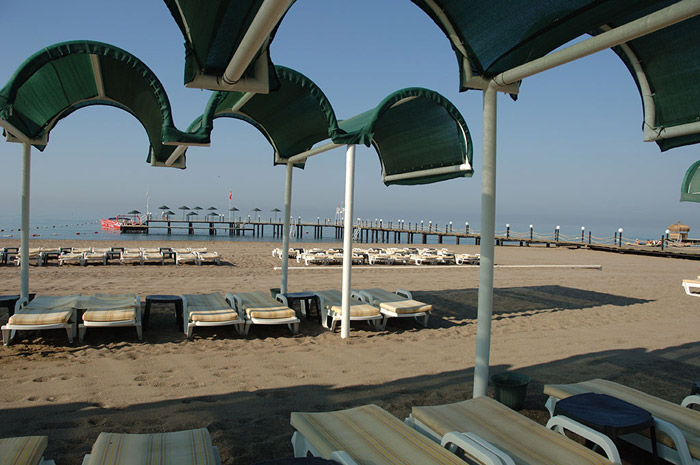 Пляж: широкий песчаный пляж протяженностью 215 метров; полотенца, шезлонги, зонтики и матрасы - бесплатно. Пирс. VIP ложи (платно).
