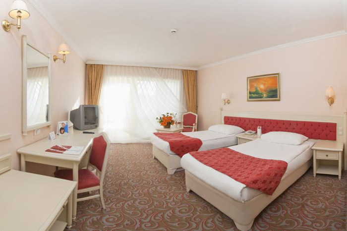 Питание: Ultra All Inclusive – завтрак, обед и ужин – шведский стол с богатым ассортиментом блюд турецкой и европейской кухни, закуски в определенные часы, рестораны a la carte по записи, легкий полночный ужин, круглосуточно безалкогольные и алкогольные напитки местного производства (раки, водка, ликер, коньяк, вино), некоторые напитки импортного производства (мартини, джин, виски, текила). Платно: алкогольные напитки премиум-класса, некоторые вина.