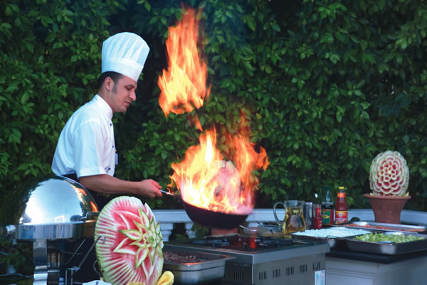 Завтрак (07:00 – 10:00), поздний завтрак (10:00 – 11:00), обед (12:30 – 15:00), ужин (19:30 – 21:00) и ночной снек (23:30 – 04:00) - «шведский стол».