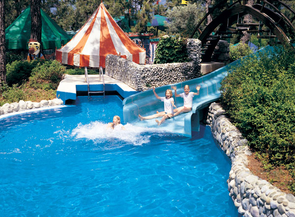 Восхитительный мир воды и приключений расположился на площади 22 000 кв.м. Первый в Турции "Рай для детей". 20 водных горок, 8 плавательных бассейнов (3 из них подогреваемые), игры и игрушки, таинственные пещеры, остров сокровищ, детский пляж, клоунады, бандитский лес, сетка для лазанья, цирк и многое другое...