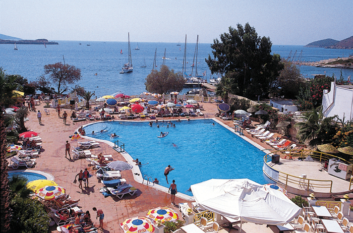 расположен в 55 км от аэропорта г. Бодрум, в районе пос. Гюмбет, в 5 км от центра г. Бодрум, на самом берегу моря