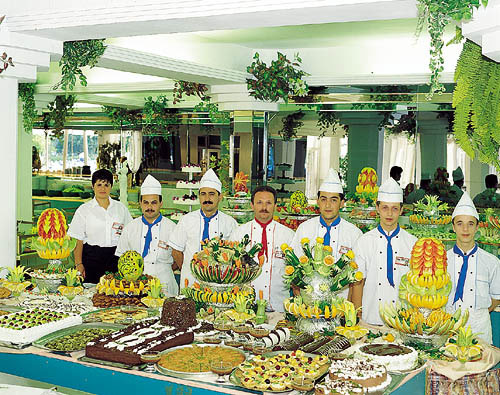 | Отдыхали с14 по 24 07.2009 г с семьей-я.муж и двое детей 11 и 3 года, Изначально перследовали цель семейного отдыха, скажу что все надежды оправдались, Отель достаточно зеленый, очень много различный растений, не 2 а три больших открытых боссейна и 2 детских по 40 см глубиной, плюс 4 горки с индивидуальными бассейнами и не 4, а 6 ресторанов -а ля карт, штуки 4 бара и плюс бар при выходе на пирс, амфитеарт, мини лунопарк, миниклуб для детей , В день приезда расселили в течении 30 мин, уборка номера, пополнение бара и смена полотенец ежедневно, постель тоже меняют больше чем 3 раза в неделю. Питание нормальное плюс есть детское питание, это каша манная, пюре, фри и мясо чаще тущеное или сосиськи, молоко берете в нужном количестве стоит всегда в холодильнике в тетрапаках. Отношение прекрасное. доброжелательное , абстоновка спокойная .Ежедневно проводятся какие либо вечерние мероприятия , выступления омимо аниматоров амфитеатра еще и привлекают приезжих певцов и танцевальные коллективы, различные шоу устраивают.Ежедневно работае диско клуб. Единстьвенное для себя определила что даже по типу все включено если и есть желание выпить и не что попало то в следующий раз возьму в дьюти фри пару бутылок нормального коньяка т к турецкие напитки честно говоря мне не понравились ни виски ни коньяк , но мой муж настаивает на самовнушении т е якобы по моему мнению если бесплатно значит ничего хорошего.Соки. коктейли. мороженное без проблем ежедневно. Аниматоры очень добросовесно занимаются с детьми им там интересно, старшая дочь могла уйти рано утром и прийти вечером и то нехотя т к там с нимии играют и рисуют и танцуют все .... На море множество шезлонгов и много мини беседок правда они чаще всего заняты, пляж галечный но это лучше чем песчанный т к во превых вода чистая а не мутная и нет песка везде в одежде на теле и тп. А если еще и сравнить с близлежащими отелями то ботаник выигрывает по площади и особенно по озеленению В отновном контингент это немцы, англичане, турки, итальянцы и снг. Дети довольны и мы не разачарованы .И как сказано в отзыве Валерия все точно для них там и поп корн и вата сладкая и на выходе на пирс в кафе и пица ежедневно и вафли и гамбургеры и запеченный картофель все....Советую парам с детьми, если вы конечно же преследуете цель выехать отдохнуть или завести романтичесоке знакомство не советую т к свободных лиц там практически кроме аниматров нет..... |
