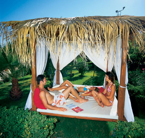 в 90 км от аэропорта г. Антальи, в 32 км от г. Сиде и г. Аланьи, в 10 км от пос. Авсаллар, на берегу моря среди пальмовых деревьев и цветочных растений.