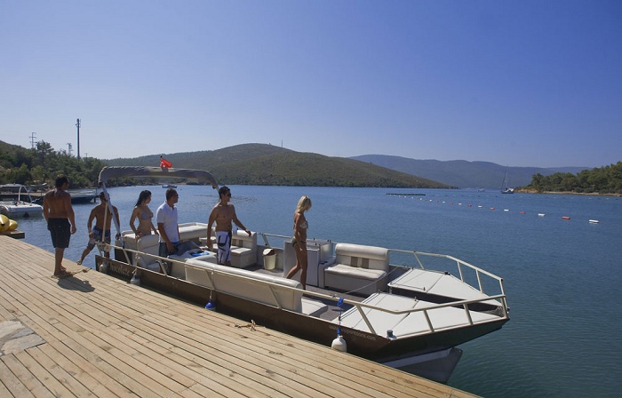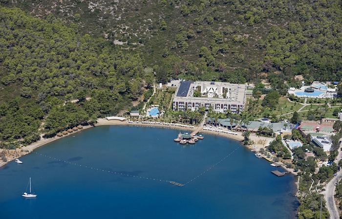 на берегу моря, в местечке Гюверджинлик (Guvercinlik) города Бодрум (Bodrum), в 23 км от центра Бодрума (Bodrum), в 12 км от международного аэропорта.