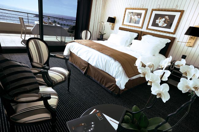 Из окон отеля открывается чудесный вид на Лазурный берег и залив с множеством белых парусов, скользящих по его лазурной глади. В оформлении номеров и холлов отеля проявляется аристократическая роскошь. Интерьеры отеля отличаются необыкновенным разнообразием стилей, соотносящихся с разными периодами французского дизайнерского искусства.