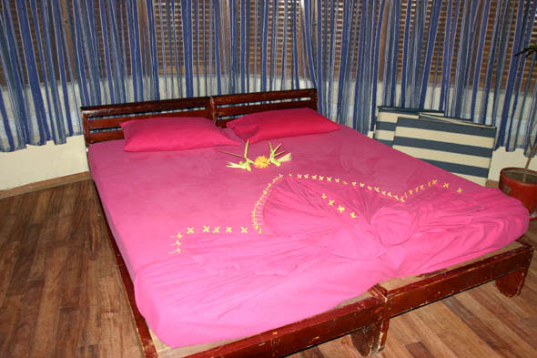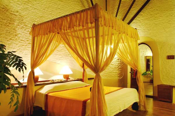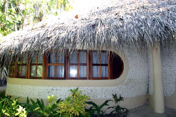Все бунгало, имеющие форму ракушки, построены из натуральных материалов, особенности архитектуры создают дополнительный объем воздуха и обеспечивают прекрасную вентиляцию, позволяющую обходиться без кондиционера.