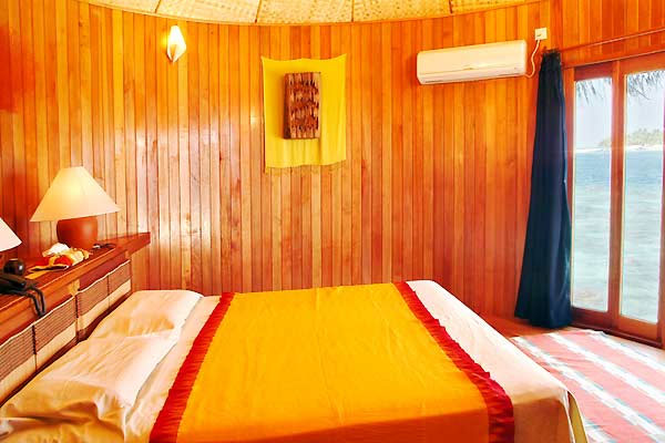 Water Apatments (100 кв.м). Номера расположены в бунгало над водой и имеют потрясающий панорамный вид на океан. В номере: кондиционер в спальне, гостиная, потолочный вентилятор, ванная комната, душ, биде, просторная терраса для принятия солнечных ванн, телефон, возможность подключения к интернету, фен, минибар, CD проигрыватель, приборы для приготовления чая и кофе, пляжные полотенца.