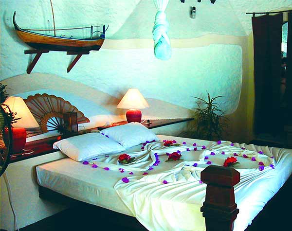 Отель Nika Island Resort настолько своеобразен, что не имеет области ресепшена. Туристы просто попадают в очень уютную, так называемую, гостиную с баром в виде большой раковины. И в таком замысловатом стиле выдержанны почти все категории номеров.