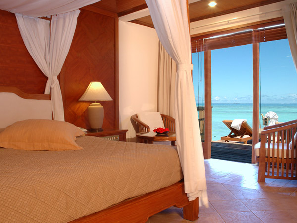 Номер расположен на сваях в лагуне, состоит из спальни, гостиной, ванной комнаты, гардеробной, душа на открытом воздухе, открытой террасы с джакузи и спуск в воду.