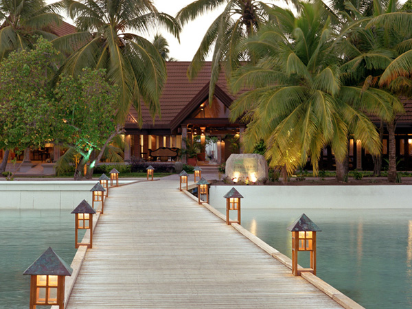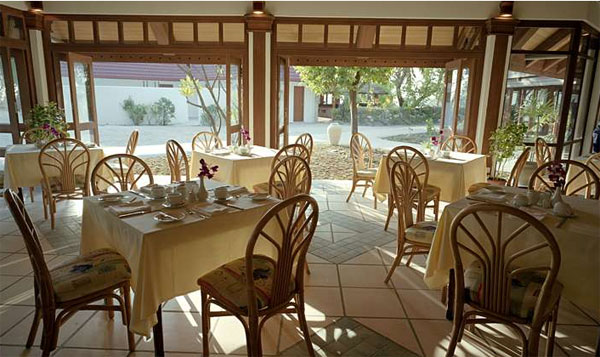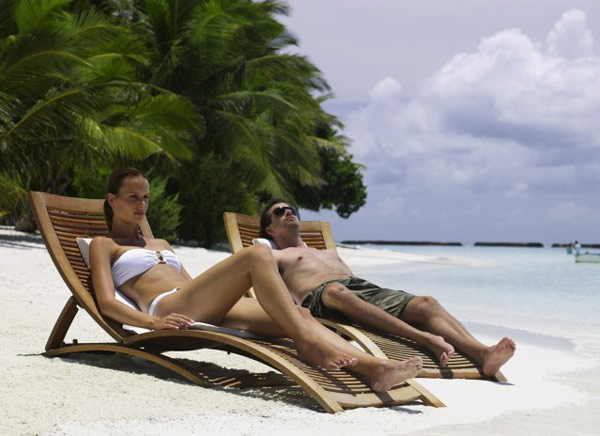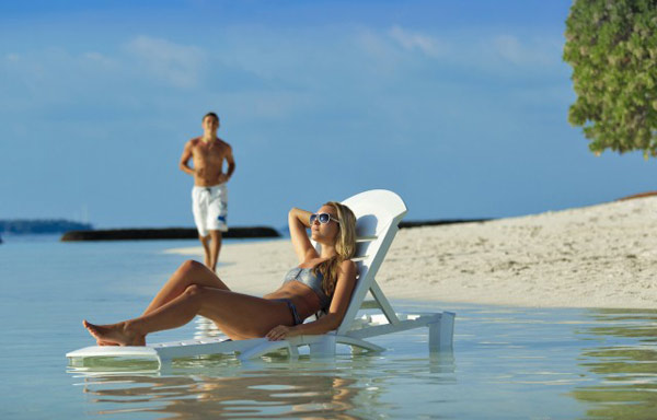 Белый песчаный берег окружен прозрачными водами голубой лагуны, защищенной волнорезами коралловых рифов. Отель славится своей демократичной и непринужденной обстановкой.