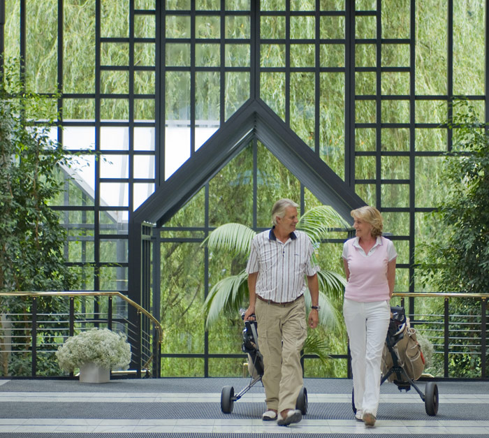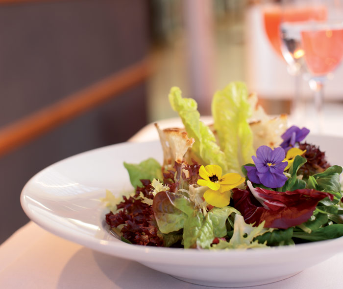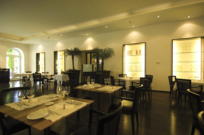 • La Terrace – ресторан (16 баллов в ресторанном рейтинге GaultMillau). Предлагает креативную французскую кухню, Spa-меню из 4 блюд, богатый выбор вин. Вечером звучит фортепианная музыка. Открыт для ужинов с 19:00 до 22:30 со вторника по субботу.