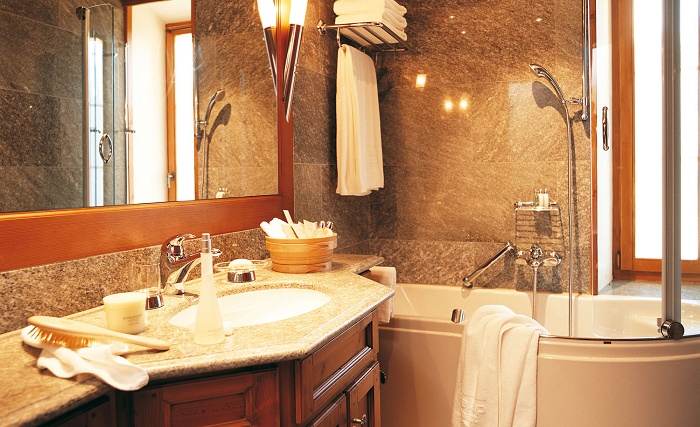 Suite "Monte Rosa" (75 кв.м.) - превосходный номер с балконом и видом на окружающие горы. В номере: спальня с кроватью king size, небольшая уютная ниша с двухъярусной кроватью, гостиная, ванная комната душем-хаммам, отдельный душ, джакузи, беспроводной интернет, спутниковое телевидение, MP3-плеер.