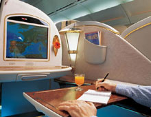 Emirates Airlines - международные авиалинии Объединенных Арабских Эмиратов, была основана 25 октября 1985 года, и находится в собственности Правительства г. Дубай. Основной офис компании находится в г. Дубай. Начав авиаперелеты на двух арендованных самолетах – Boeing 737 и Airbus 300 B4 – Emirates очень скоро превратилась во влиятельную корпорацию в мире перевозок, путешествий и туризма. Сейчас Emirates Airlines осуществляет рейсы по более чем 88 направлениям и 59 странам, и эти цифры постоянно растут. Почти 700 рейсов Emirates Airlines в неделю отправляются из Дубаи по разным направлениям на пяти континентах. Авиакомпания Emirates удостоена многих наград и поощрений за все виды предоставляемых услуг. Авиалинии неизменно лидируют во всем – от четкой работы службы международных грузоперевозок до превосходного питания в полете. С каждой новой наградой авиакомпания предлагает еще более высокий уровень услуг – примером тому служат новые залы международного аэропорта г. Дубай, новые пункты назначения и самые современные самолеты Airbus A340-500 и Airbus A380. Эмирейтс отличается двумя основными качествами: постоянный, динамичный рост и непреложное внимание к обеспечению самого высококлассного сервиса. Поступательное развитие и сохранение качества – секрет успеха Эмирейтс. Салон первого класса - это высокие стандарты во всем, Вы испытаете все прелести комфортного перелёта. Салон бизнес класса - место для работы и отдыха. Максисум удобств для пассажиров. Салон эконом класса - это путешествие с комфортом. Высокие стандарты сервиса для пассажиров. В настоящее время авиакомпания Emirates Airlines осуществляет полеты более чем по 88 направлениям и 59 странам (Ближний и Дальний Восток, Европа, Северная Америка, Африка, Западная Азия, Австралия) через центр сети сообщений Международного аэропорта г. Дубай. Авиапарк компании состоит из наиболее современных и комфортабельных самолетов: Airbus A380 - это первый в мире магистральный гражданский самолет с двумя полноразмерными палубами по всей длине фюзеляжа. Он может взять на борт на треть больше пассажиров, чем его основной конкурент Boeing-747. A380 – самый большой пассажирский самолет в мире. Boeing 777-200/300 - один из больших самолетов в авиапарке Эмирейтс. Для пассажиров предусмотрено 290 посадочных мест. Салон первого класса рассчитан на 12 мест, салон бизнес класса - на 42 места, салон эконом класса - на 236 мест. Другая конфигурация этого авиалайнера предусматривает 346 посадочных мест. Салон бизнес класса включает 42 места, салон эконом класса - 304 места. Обе конфигурации авиалайнеров были модернизированы, чтобы сделать ваше пребывание на борту максимально комфортным. В качестве развлечения пассажирам предлагается информационно-развлекательная система, состоящая из 600 каналов. Вoeing 777-300 – самый большой авиалайнер в авиапарке Эмирейтс. Для пассажиров предусмотрено 434 места, из них 49 мест для пассажиров бизнес класса и 385 мест для пассажиров эконом класса. Airbus A330 -200 Благодаря высокой звукоизоляции и просторным салонам пассажиры могут насладиться тишиной и уединенностью. Airbus A340-500 новый авиалайнер в авиапарке Эмирейтс, первый – среди авиалайнеров нового поколения. Благодаря дизайну самолета и техническим возможностям, ваш полет становится максимально комфортным и приятным. Вы можете насладиться уединенностью, высокой звукоизоляцией и более широким спектром развле