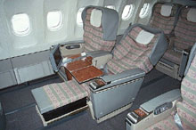 Просторный салон первого класса оформлен очень элегантно. Здесь органично сочетаются европейский уют и азиатская роскошь. Наслаждаться полетом пассажирам позволяют широкие и очень удобные кресла, которые откидываются на 38 см и расположены друг от друга на расстоянии 1,82 м. Каждое кресло снабжено подголовником, имеет подставку для отдыха ног и суппорт для поясницы. Любезные и приветливые стюардессы предложат Вам еше на земле шампанское, свежие фруктовые соки, минеральную воду «Перье», кофе и финики. Во время полета Вы сможете насладиться аперитивами, горячими и холодными канапе, а также обедом из семи блюд, приготовленным нашим опытным шеф-поваром, и широким ассортиментом вин. К Вашим услугам: |