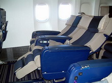 1-3 ряды Класс: Бизнес Тип кресла: Life-flat Видео: персональное TV Описание: Места бизнес класса, раскладывающиеся в кровать во время длительных ночных перелетов. Каждое место оборудовано персональным TV Ряд 1 - Места с увеличенным пространством перед креслом. Столики для питания крепятся на подлокотники. Ряд 3 - предупреждение: может быть слышен шум из эконом класса.