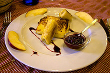 Когда на улице еще не потеплело настолько, чтобы разгуливать в футболке, а зима уже настолько опротивела, что хочется сбежать от нее практически куда угодно, прекрасный выход - это Канарские острова. Там тепло, более-менее можно купаться, а загорать - так хоть целый день. И если проголодаетесь, плотно и вкусно поесть. Казалось бы, Канары - та же Испания, что особенного: все та же паэлья и хамон. Ага, сейчас. Конечно, традиционные испанские блюда здесь имеются, однако оторванность от материка все же дает о себе знать. За долгие годы с тех пор, как Канарские острова были заселены, здесь появилось много местных блюд, которые заслуживают вдумчивого и неторопливого изучения. На островах хорошо развито сельское хозяйство, здесь выращивают коров, свиней и коз, а океан преподносит свои дары. Наверное, самая известная местная вещь - это papas arrugado, она же морщинистая картошка. Ее варят «в мундире» в очень соленой воде, а потом подают политую каким-либо соусом. Если беспокоитесь, что соленая будет, то совершенно зря: на вкус papas arrugado - как обычная картошка в мундире. Правда, очень вкусная. К соусам канарцы относятся с трепетом, умеют и любят их готовить. Кстати, в приготовлении не используется никаких консервантов, все натуральное, химическая промышленность отдыхает. Соусы бывают острые, а бывают и не очень. Например, если соус зеленого цвета, то обычно он не слишком острый, насчет красного быть уверенным нельзя: вот красный мохо - острый. Впрочем, всегда можно уточнить у официанта. Если вы питаете непреодолимую страсть к морепродуктам, то, пожалуй, задумаетесь о том, не уехать ли на ПМЖ на Канары. Королевские креветки потрясают своими размерами, также в меню обнаружатся свежайшие кальмары, осьминоги, каракатицы, устрицы, мидии... И все это в различных вариантах приготовления, щедро сдобренных фантазией повара. Рыбы тоже навалом: треска, дорада, морской окунь, тунец, камбала, угорь... Подают все это исключительно в кафе и ресторанах: побережье европейское, никакой антисанитарии, поэтому развлечь себя выбором свежей рыбки прямо у лотка на пляже и наблюдением за тем, как ее готовит абориген, не удастся. С салатами на Канарах забавно: встречаются совершенно неожиданные сочетания. Например, под кодовым названием «салат тропический» может проходить удивительная смесь из манго, авокадо, ананаса, яблок, салата, кукурузы и королевских креветок, с заправкой типа «Тысяча островов». Большинство салатов - овощные, в основе - собственно салат, кукуруза и помидоры. Закуски тоже оригинальные: например, аналог камамбера в клюквенном соусе - козий сыр на гриле с домашним вареньем, вроде брусничного. Немного похож на жареный сулугуни, только более пресный. И, конечно, настоящий испанец не может без мяса, даже если он живет на острове. Говядина, свинина, козлятина, кролик, курица - на любой вкус. Готовят как на гриле, так и на сковороде. Стейк с кровью - практически сырой и очень вкусный; популярна курица-гриль (польо асадо). Свинина, приготовленная в оригинальном сочетании с креветками, совсем нежирная, а добавление фирменного соуса придает пикантный вкус. Вообще мясо очень неплохое, хотя бывает, конечно, лучше. Но рецепты местных поваров по-любому заслуживают тщательного изучения. Если вы успешно одолели все заказанное (а почему б и не одолеть? Натуральные продукты!) и желаете вкус